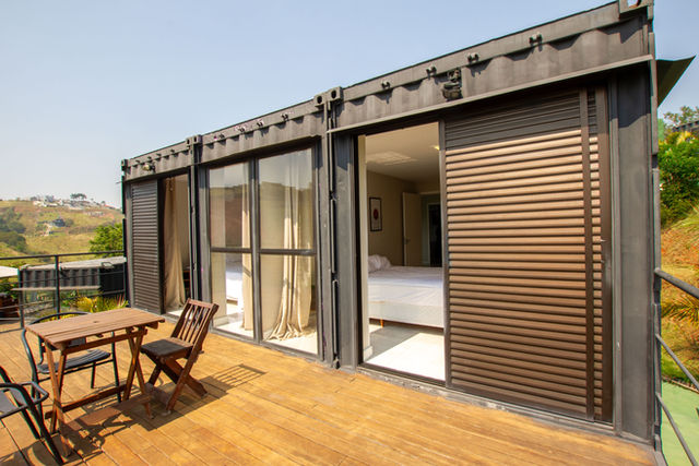 Cada container de 20 pés tem aproximadamente 15m² e pode ser adquirido com os seguintes acabamentos: